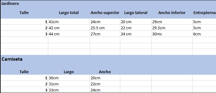 Debido a la confección artesanal, los tamaños pueden variar levemente.